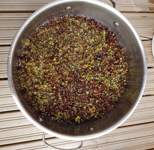 Viimeisimpänä kokeiluna olivat hevonhierakan ruskeat siemenet. Tuoreista hevonhierakan siemenistä saatava väri on sieltä keltaisen/vihreän välimaastosta mutta kuulin että myös punaisia sävyjä on mahdollista saada. Sitähän piti ehdottomasti kokeilla. Ihan täysin punaista en saanut, mutta punaruskeita ja suklaanruskeaa kylläkin. Kokeilu oli siis ihan onnistunut!