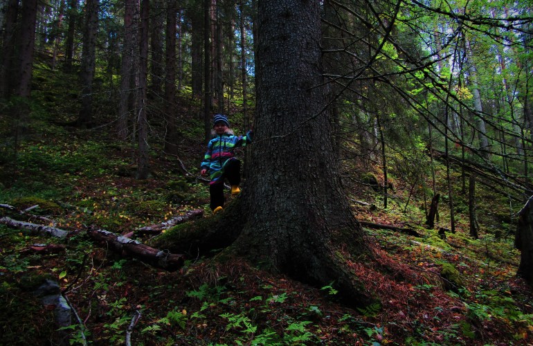 Vaikeakulkuisuutensa vuoksi alue on säästynyt hakkuilta. Iäisyyden kasvaneet kuuset seisoivat ylväänä paikallaan. Ympärysmitaltaan mahtavat kuusivanhukset ovat poikkeuksia nykyluonnossa, joiden kohtaaminen saa aina hyvälle tuulelle. Myös perheen pienin koki nämä mahtavat puut vaikuttaviksi, eikä matkaa voitu jatkaa ennen puille annettuja halauksia ja lupauksia pikaisesta jälleennäkemisestä.