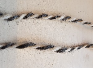 Lopuksi kehrätyt langat kerrataan. Omat taidelankani kertasin 2-säikeiseksi. Taitava kehrääjä osaa laittaa lankaan kierrettä juuri sopivasti, mutta meille harjoittelijoille voin kertoa kikan liian kierteiselle langalle: lanka kierretään tiukasti, vaikka vanhan puolarullan päälle, ja annetaan langan veltostua rauhassa useamman kuukauden ajan. Kokemuksesta voin kertoa tämän keinon toimivan. Jos kierrettä on sopivasti, lanka keritään tai vyyhditään odottamaan jatkokäyttöä.