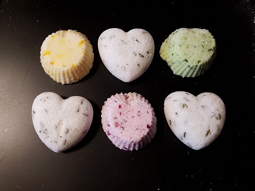 Erilaisia kylpypommeja, jotka veteen päästyään sihisevät hauskasti.