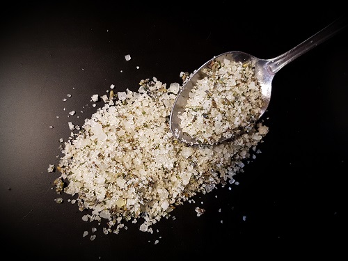 Laventeli-jalkakylpysuola sisältää mm. meri- ja epsom-suolaa.